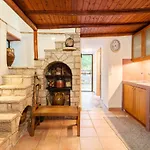 In der Petalidi Olive Garden Stone House Near The Beach finden Sie eine voll ausgestattete Küchenzeile mit einer Mikrowelle, einem Kühlschrank und Küchenutensilien.